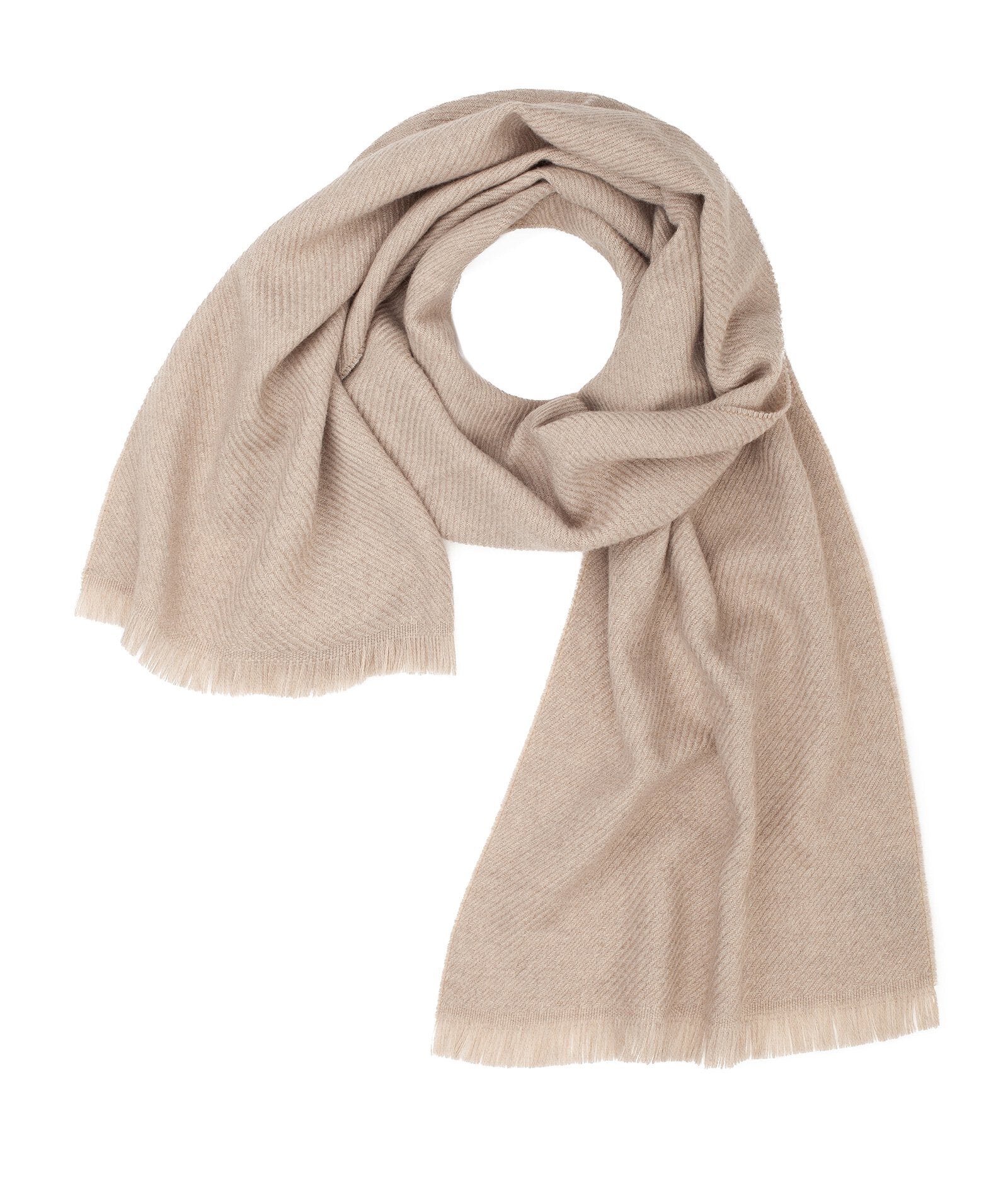 Made of pure wool, this beige twill scarf is the ultimate winter staple. Warm and enveloping, it features fringed detailing to add a special touch to your more informal looks. Scarf measures 35cm x 180cm.