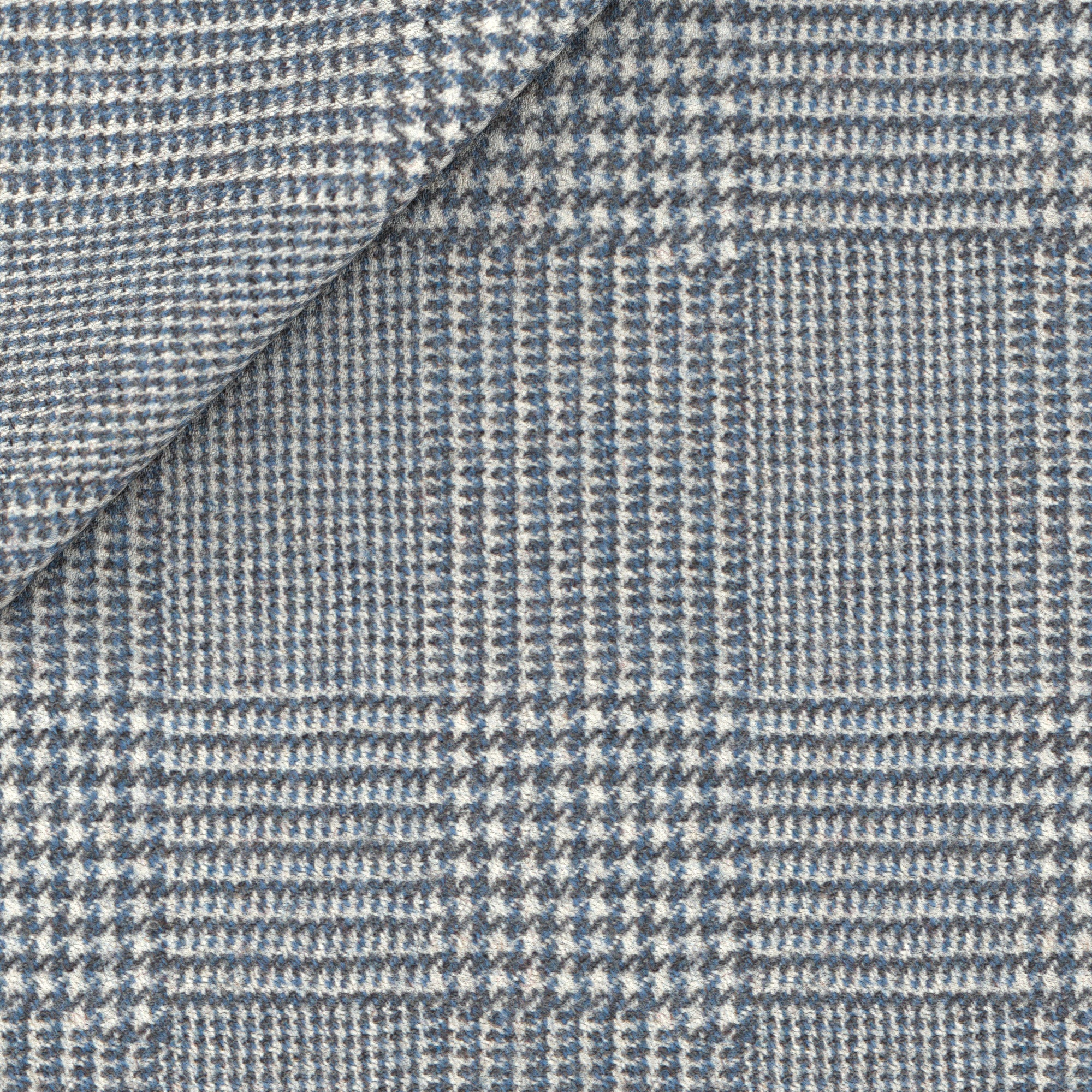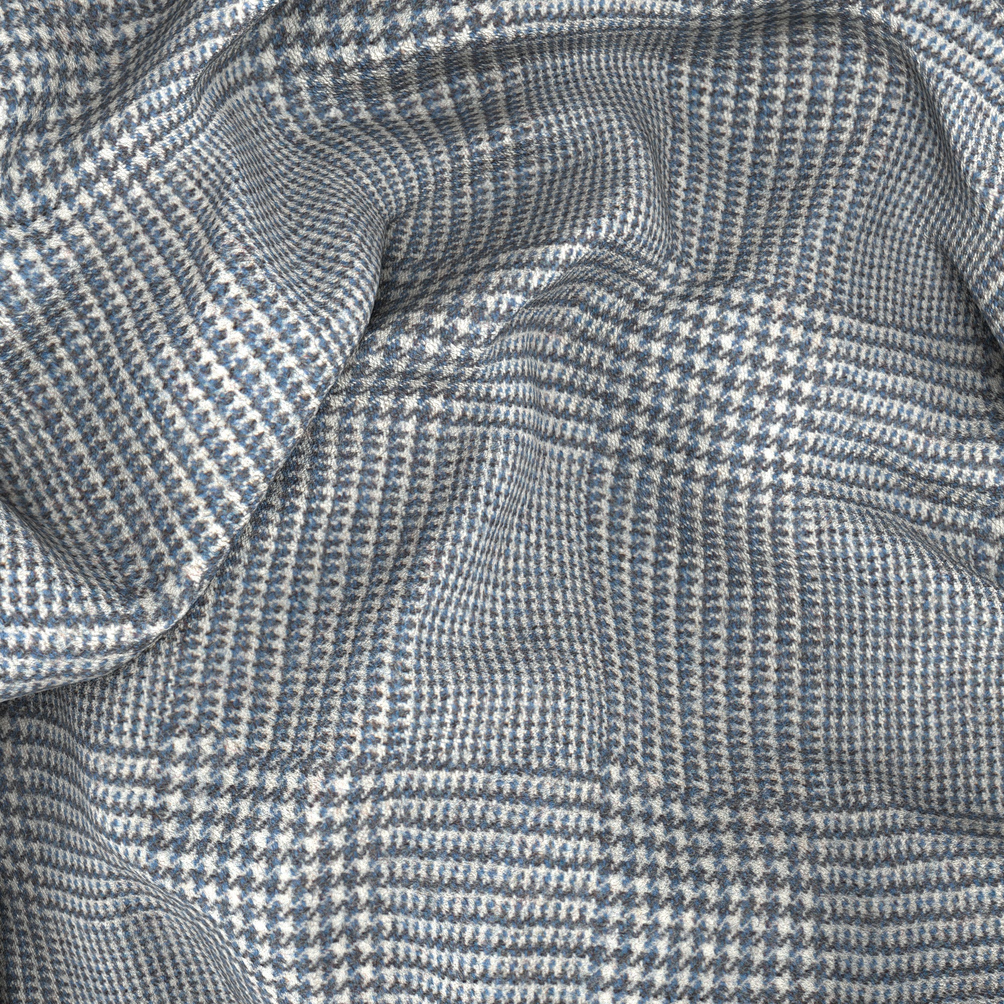 Chaleco confeccionado A Medida en lana de la fábrica de lana Ermenegildo Zegna con una fantasía Príncipe di Galles en los tonos refinados del azul. Un toque de luminosidad para una prenda de invierno que se puede llevar, junto con el traje del mismo tejido, tanto en la oficina como en ocasiones formales.