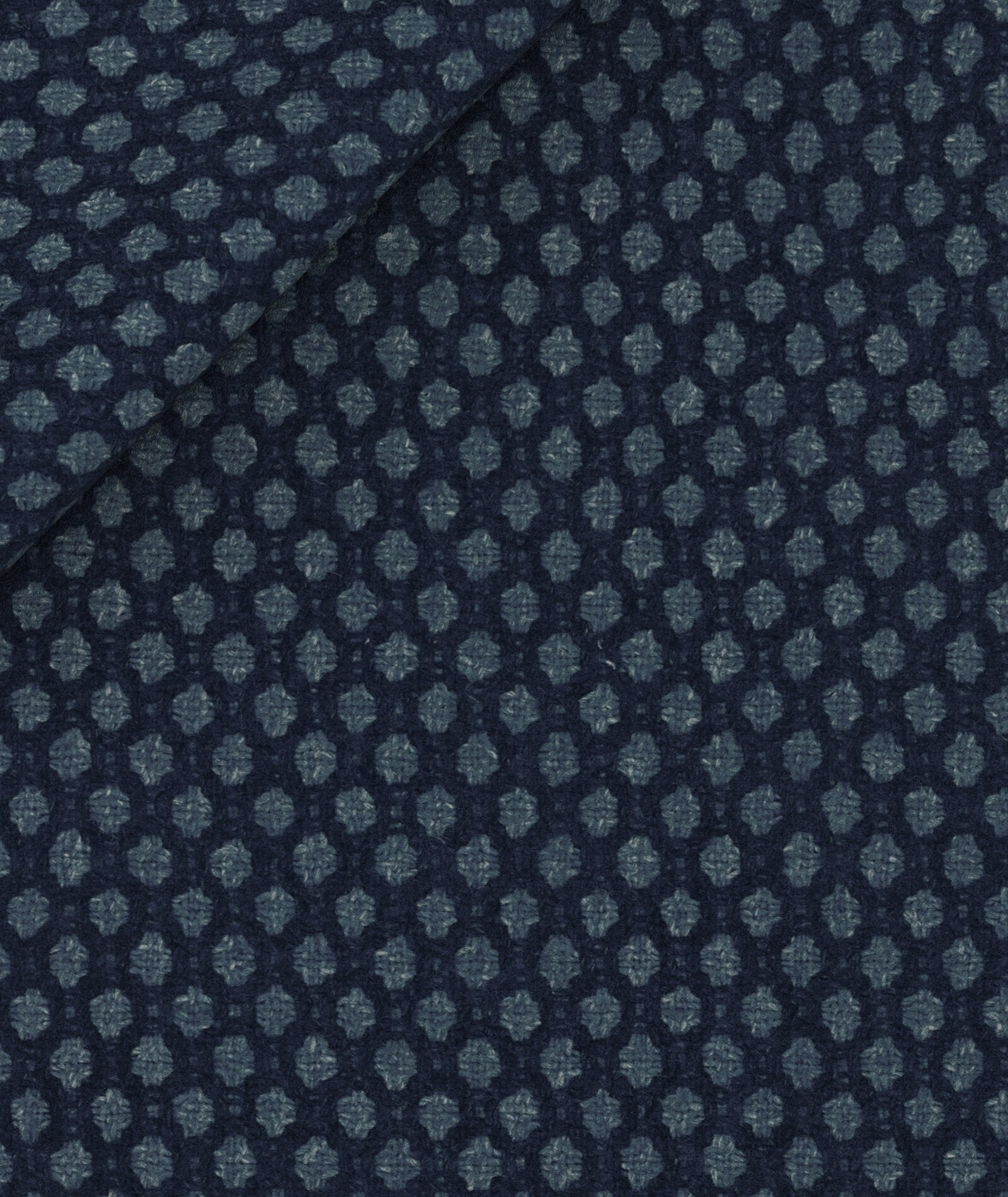 Rien à voir avec le bleu traditionnel ! La veste de tailleur sur mesure de veste de tailleur sur mesure Bleu Macro Dots se caractérise par un grand design à pois réalisé à partir d'un tissu en laine, coton et cachemire. Pour tous ceux qui recherchent une pièce chaude et différente à la fois, mais sans vouloir exagérer. Une touche de style pour votre look d'hiver de tous les jours.