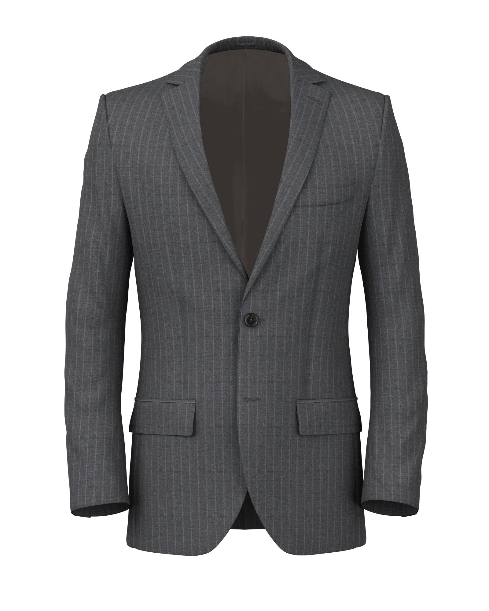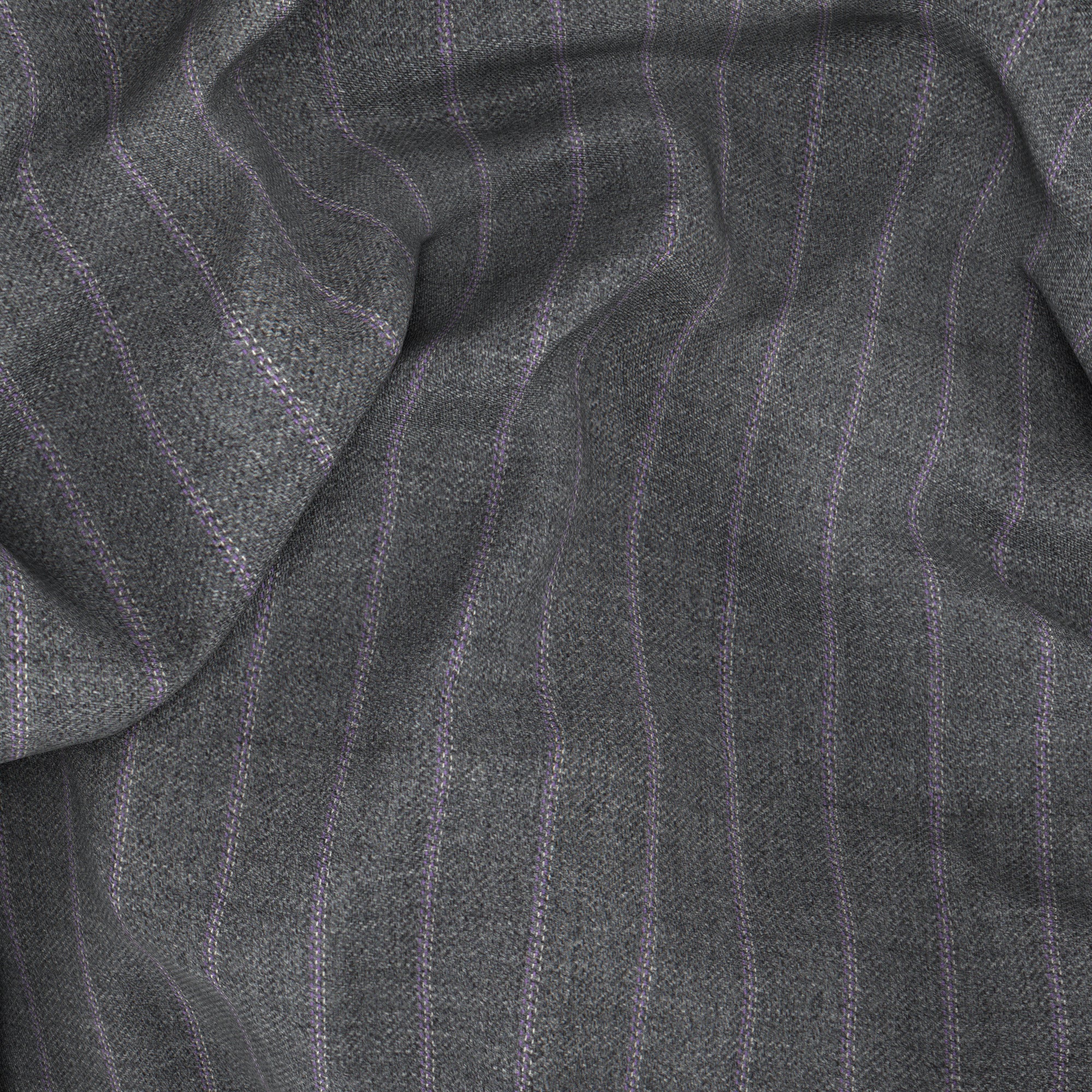 Veste réalisée Sur Mesure avec un tissu en laine de la manufacture de laine Vitale Barberis Canonico. Dans des tons gris moyen, il a de fines rayures lilas qui donnent une touche contemporaine et lumineuse au vêtement. Le bon mélange de style classique et contemporain, idéal pour les occasions professionnelles et - grâce au grammage moyen du tissu - toute l’année.